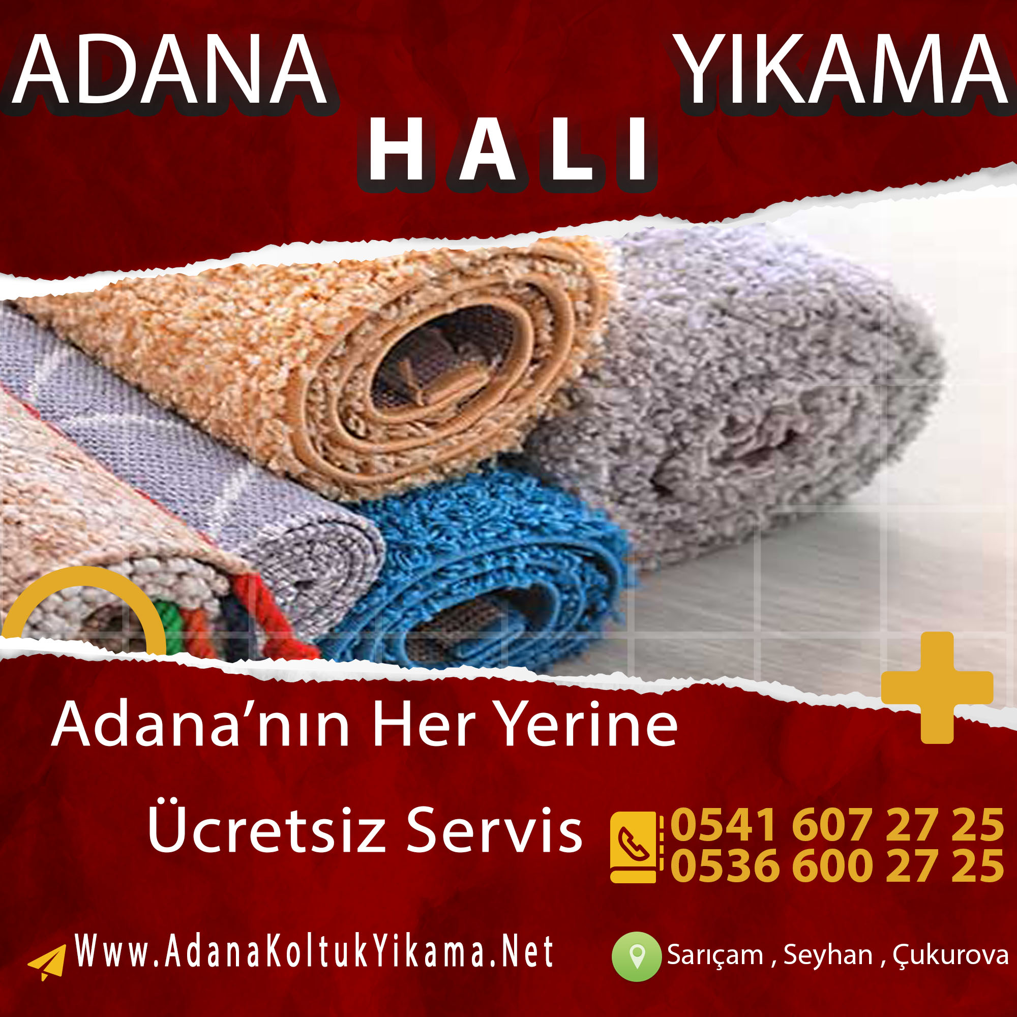 Adana’nın Seyhan halı yıkama , Çukurova halı yıkama , yüreğir halı yıkama , sarıçam halı yıkama olarak 4 ilçemizde halı yıkama hizmeti veriyoruz.