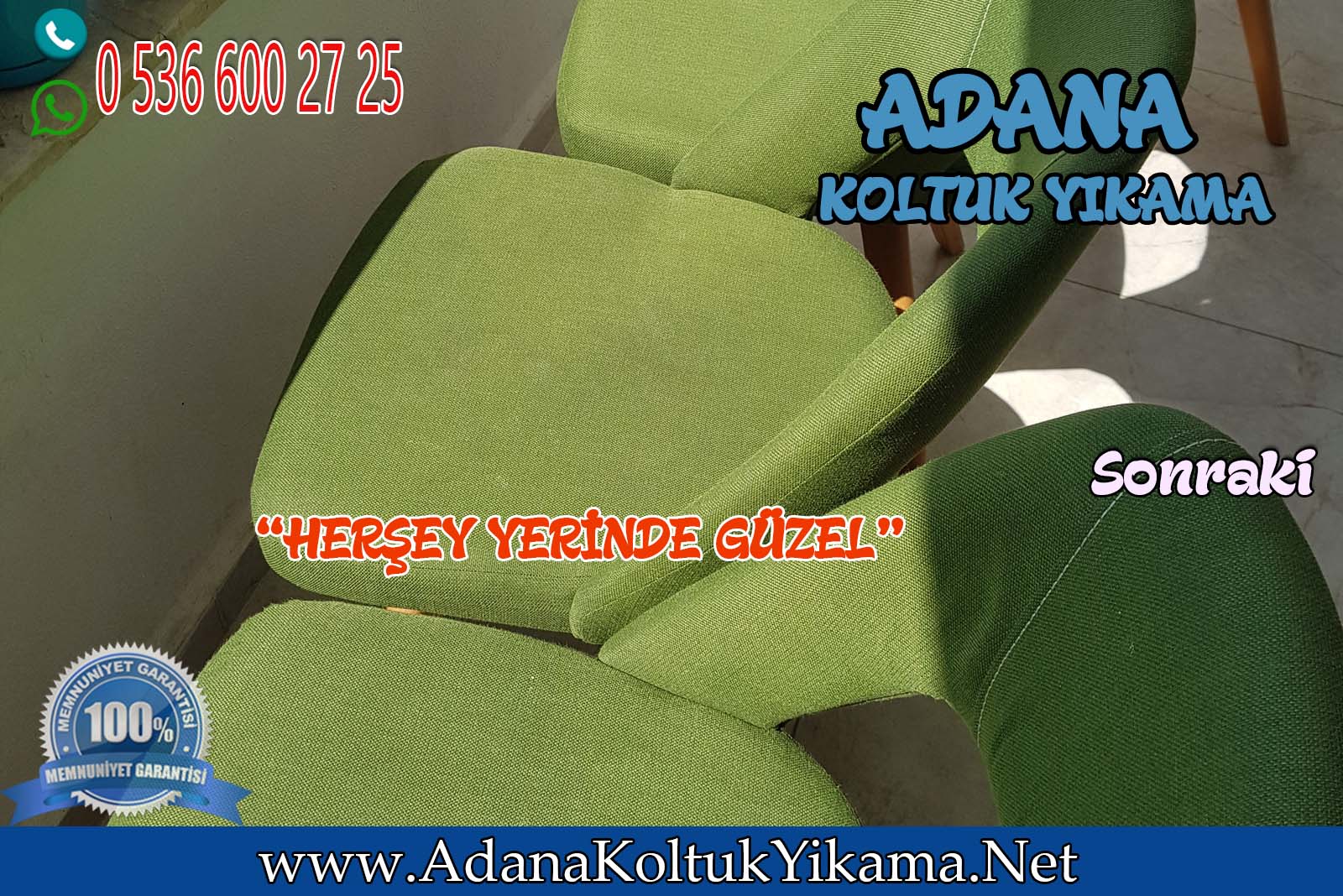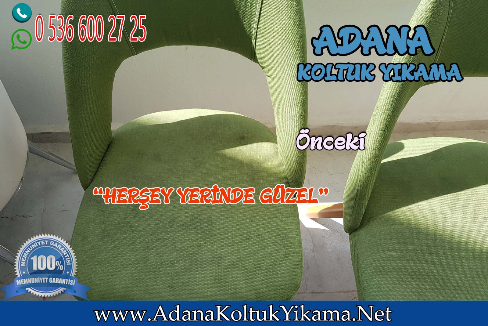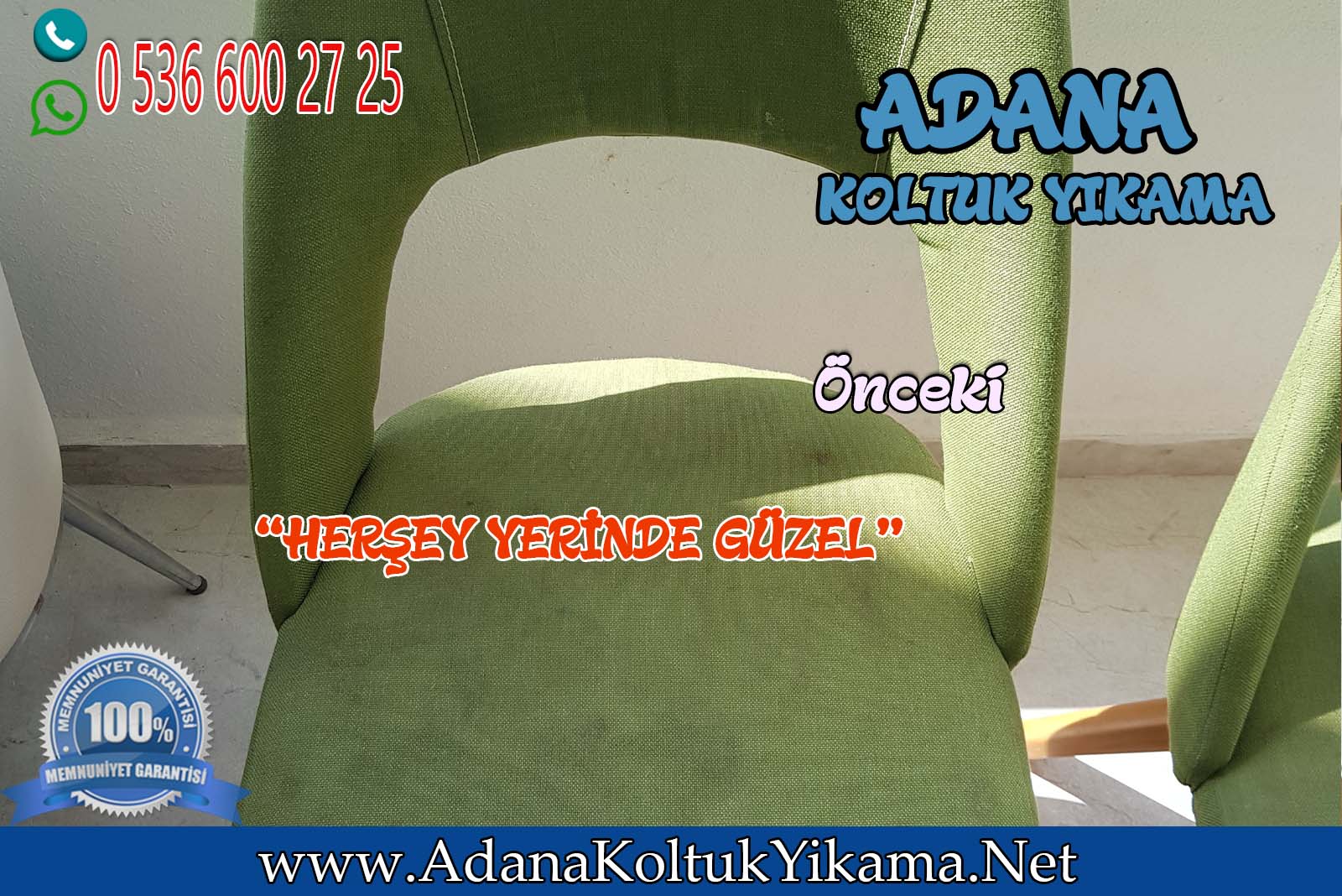 Adana Koltuk Yıkama ile Yıkanması zor olan Sandalye ürünler de Kaliteyi Müşterimize hissettirmenin mutluluğunu yaşıyorum.